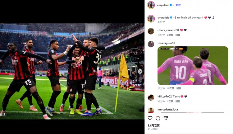 普利西奇也在赛后通过社媒晒出庆祝照,并配文:“用3分完美作别这一年!”
