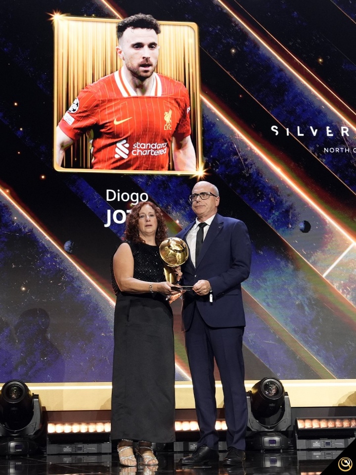 父母代若塔领取环足特别纪念奖,C罗与若塔父母拥抱❤️