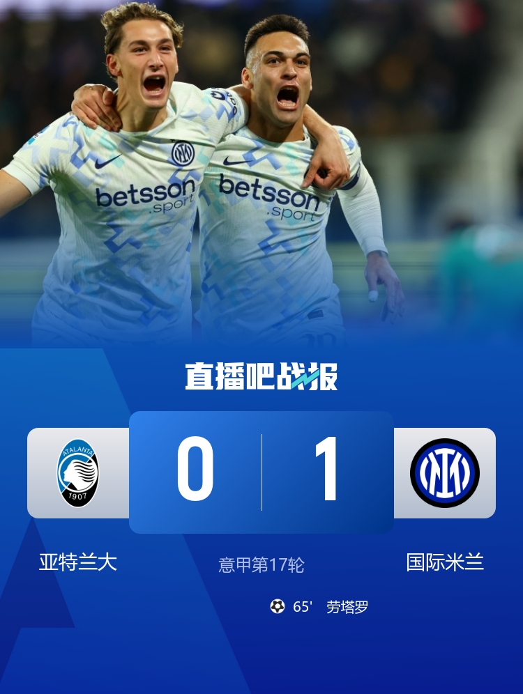 第65分钟,亚特兰大后场传球失误送礼,刚刚替补登场的埃斯波西托抢断做球,禁区左侧劳塔罗跟进低射入网,国米1-0领先↓