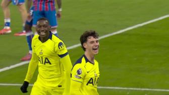 第41分钟,热刺左侧角球开入禁区,穆阿尼后点摆渡到门前,里沙利松头球一蹭,格雷头球接力将球顶进,热刺1-0水晶宫。↓