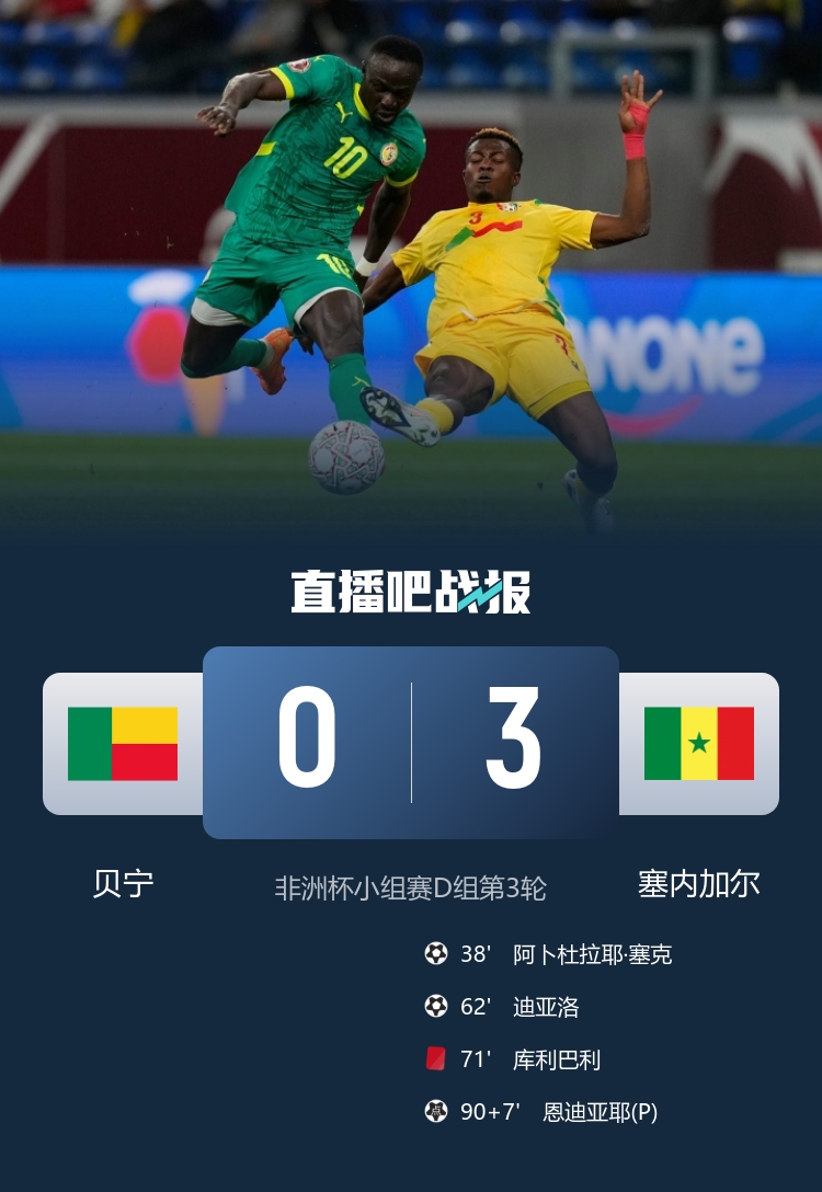 恩迪亚耶主罚点球一蹴而就,贝宁0-3塞内加尔!↓