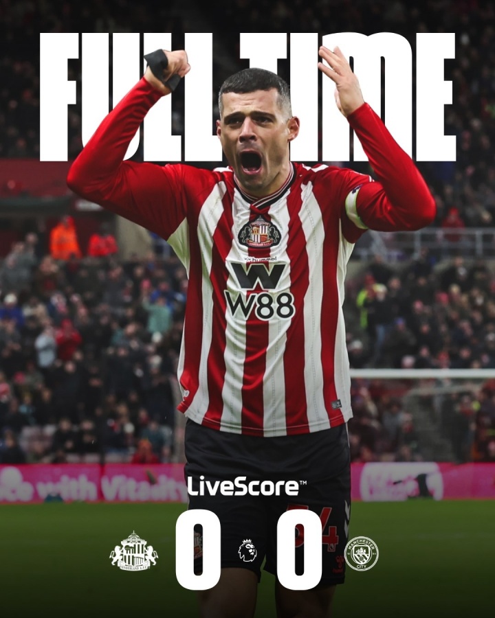 直播吧01月02日讯 英超第19轮,桑德兰主场0-0战平曼城,升班马桑德兰延续了他们本个赛季主场不败的战绩。