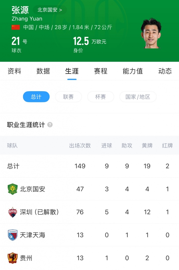 张源于2023年从深圳队转投北京国安,共代表国安出战47场比赛,贡献3球4助攻。上赛季,张源各项赛事21场2球3助。1月1日,张源与国安合同到期,成为自由身。