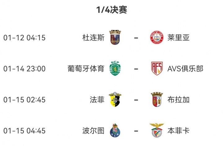 葡杯8强对阵↓