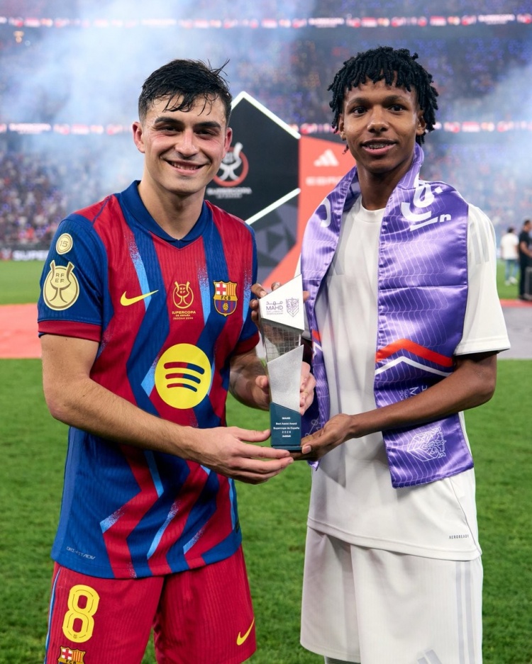 佩德里也在赛后被西班牙足协授予西超杯最佳助攻奖。
