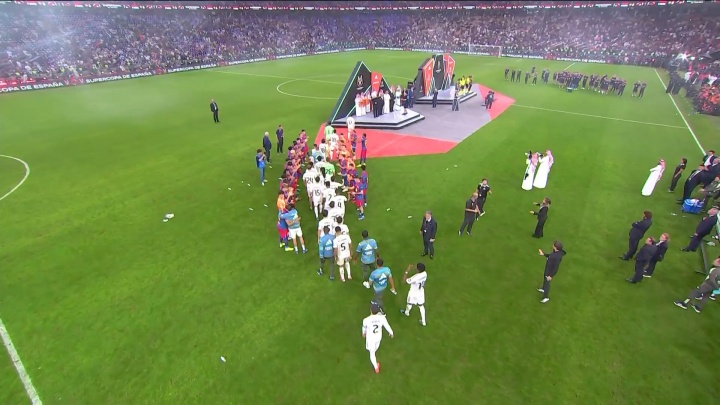 尊重!皇马全队上台领取亚军奖牌,巴萨全队为皇马球员列队