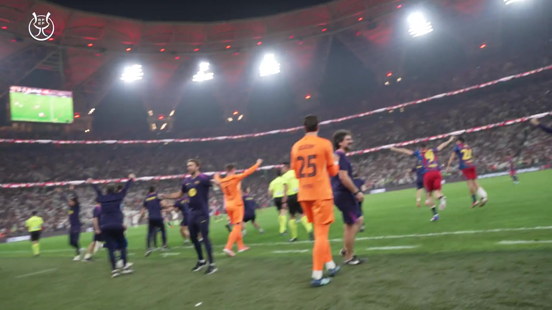 >📹西足协官方视角看巴萨夺冠:拉菲尼亚长时间跪地,拥抱弗里克