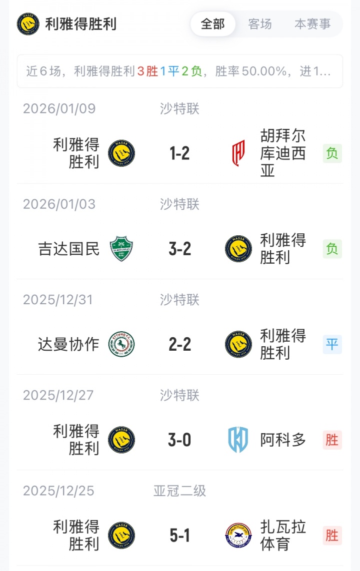 利雅得胜利首发:1-阿奇迪、12-纳瓦夫、26-伊尼戈·马丁内斯、3-西马坎、23-叶海亚、11-布罗佐维奇、17-哈巴利、20-安吉洛、21-科曼、79-菲利克斯、7-C罗