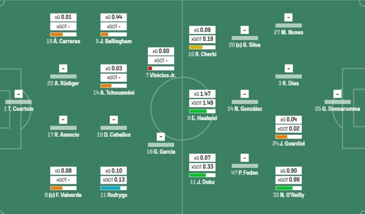 皇马对曼城比赛归纳:各项高阶数据对比