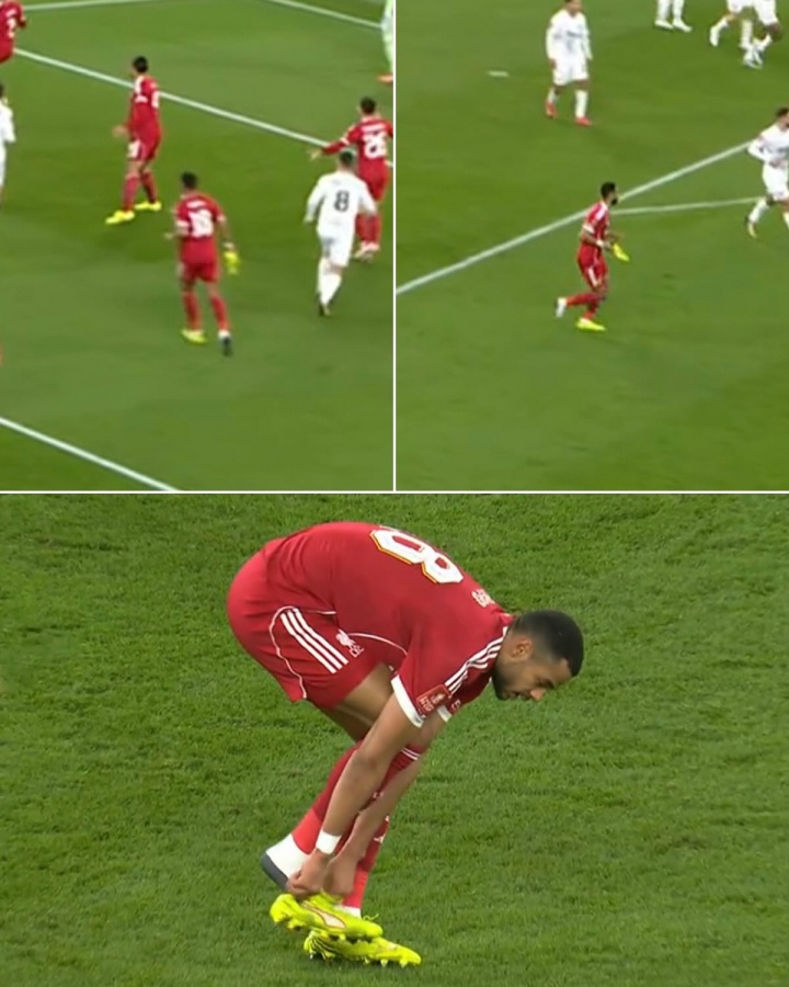在一次碰撞后,加克波右脚的球鞋不慎脱落,但他顾不上穿鞋,直接手提着一只鞋带球反击,最终将球分给队友。