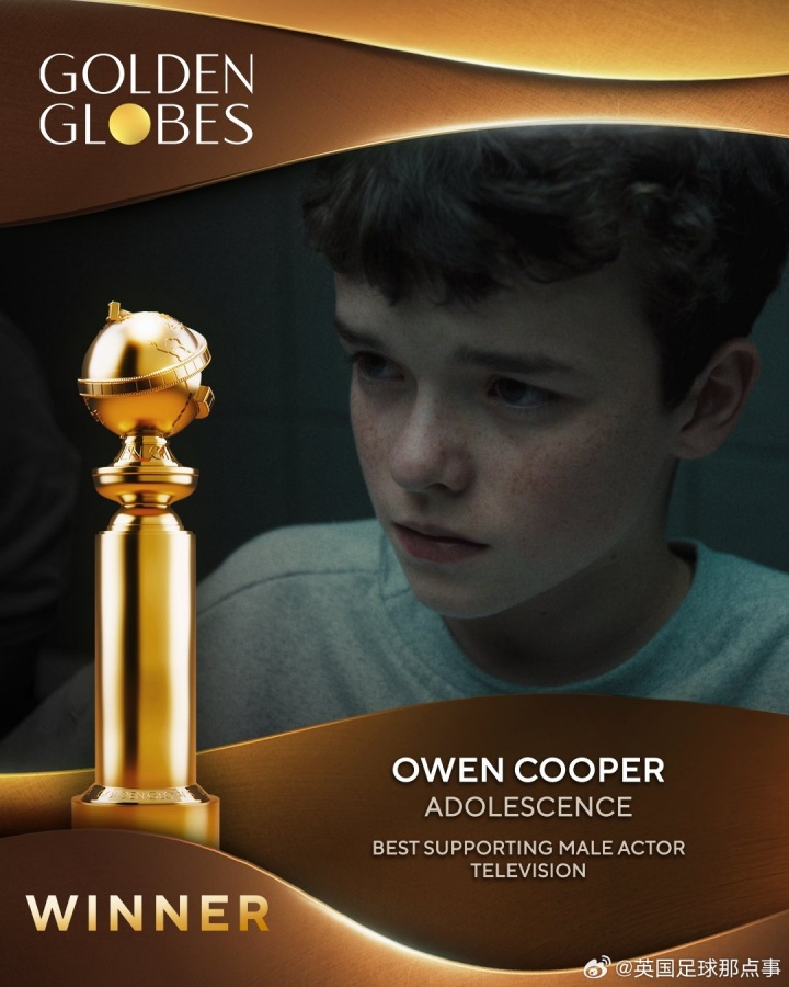 16岁的库珀凭借《混沌少年时》荣膺电视类最佳男配角,成为奖项史上最年轻得主