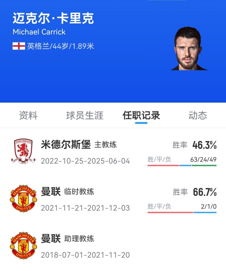 消息称,曼联已原则上同意任命卡里克为临时主教练,带队至本赛季结束。