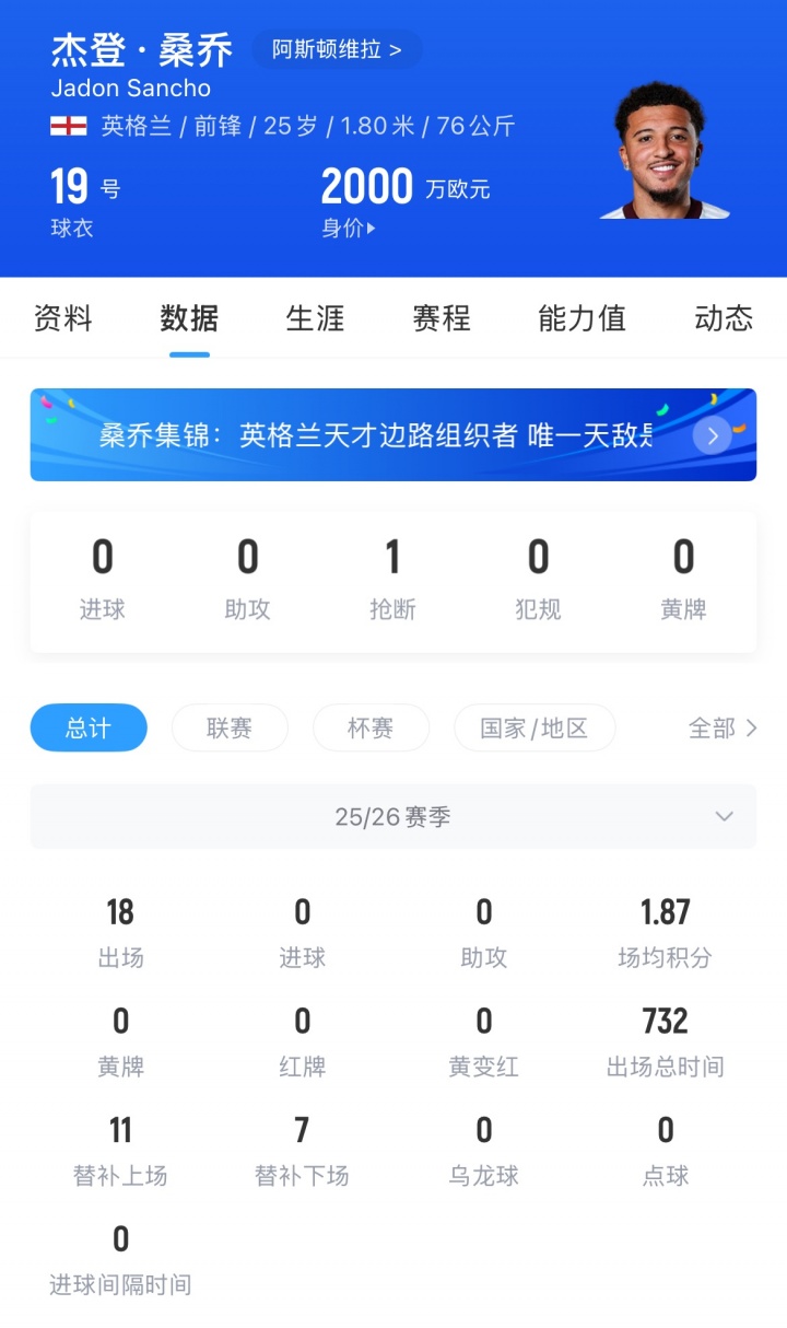 桑乔的未来尚不明朗,他本赛季外租维拉仅仅担任边缘角色,这样的表现可能很难为他吸引到追求者。