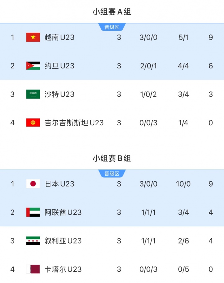 直播吧01月14日讯 U23亚洲杯小组赛D组最后一轮战罢,标志着这届U23亚洲杯小组赛阶段全部比赛就此踢完,晋级淘汰赛的八支球队全部出炉!