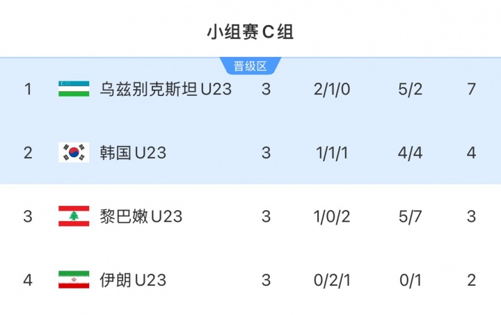 小组赛C组:乌兹别克斯坦U23、韩国U23晋级
