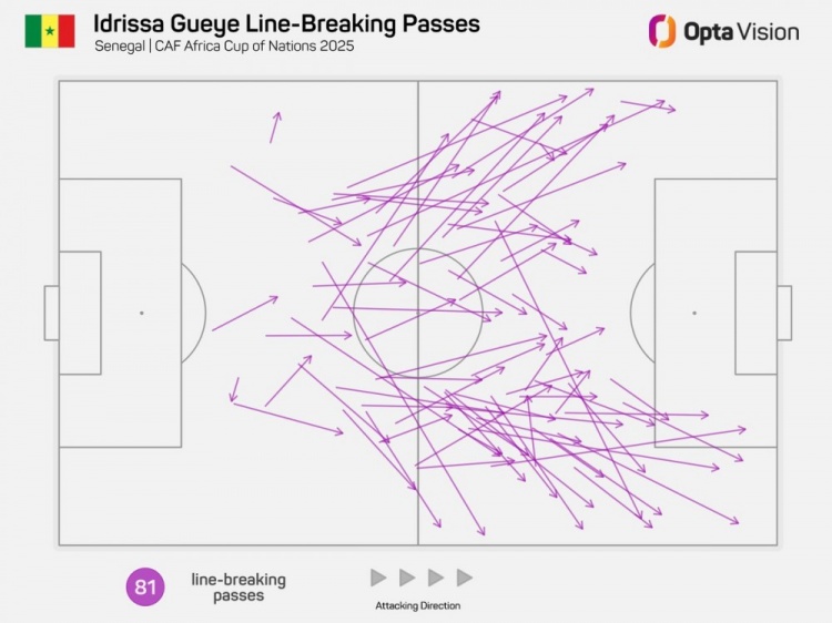 数据统计显示,盖耶在本届非洲杯共计81次送出穿透防线传球,同期赛事第二伊沃比仅60次。