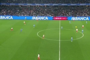第31分钟,拉科鲁尼亚右路攻势,皮球传中到前点,头球攻门被门将胡安·穆索扑出↓
