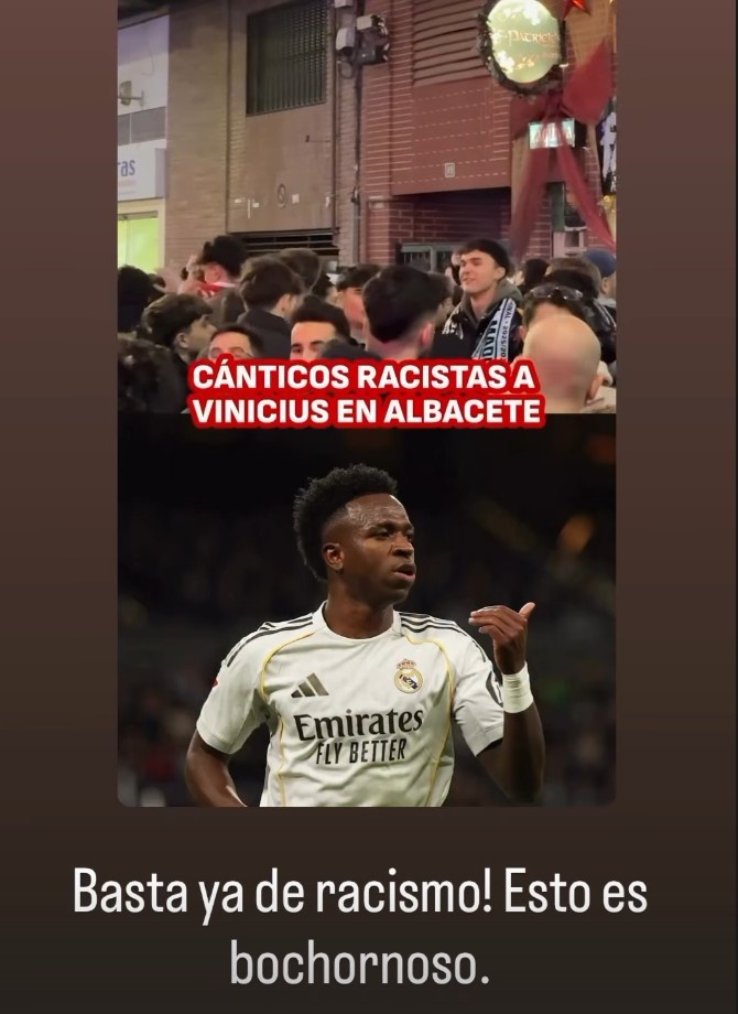 主队球迷在赛前于球场附近高唱辱骂维尼修斯的歌
