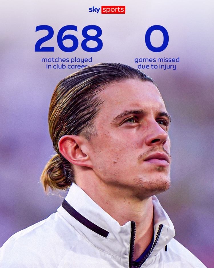 据天空体育统计,加拉格尔职业生涯至今出战268场俱乐部比赛,从未因伤缺席俱乐部比赛。