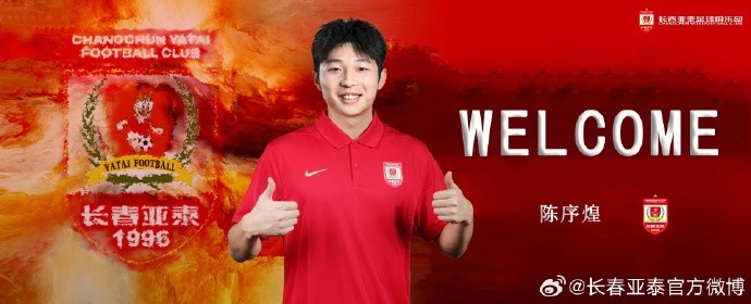 经友好协商达成一致,陈序煌正式加盟长春亚泰足球俱乐部。即日起,他将代表长春亚泰队征战2026赛季中甲联赛及足协杯赛事,与亚泰第12人一起为长春战斗!