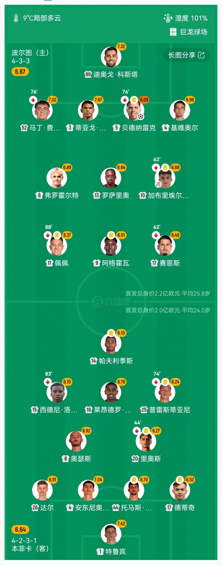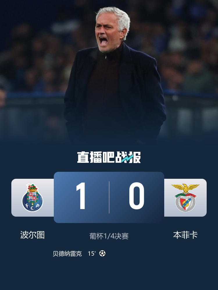 第15分钟,波尔图右路角球机会,维加主罚开到禁区,贝德纳雷克抢点头槌破门!波尔图1-0领先↓