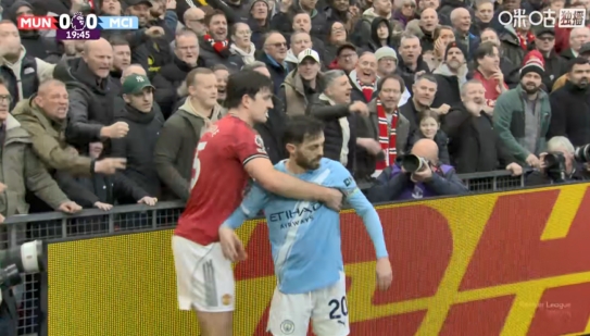 直播吧01月17日讯 曼市德比第20分钟,马奎尔护球出底线,B席逼抢下两人双双倒地。