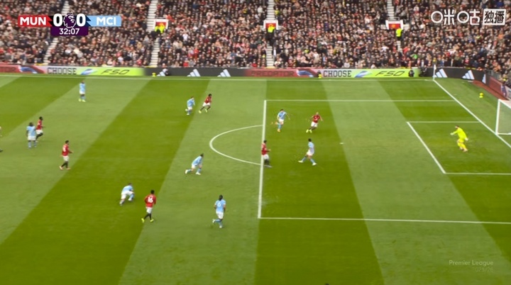 比赛第34分钟,罗德里后场传球失误,姆伯莫错失良机。