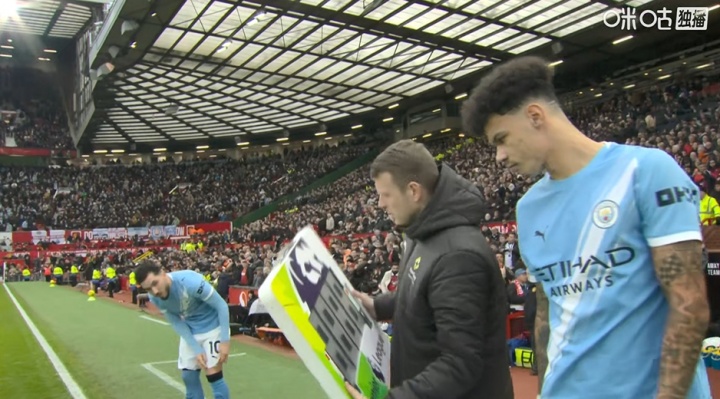 下半场比赛开始,曼城换人调整,奥赖利、谢尔基换下阿莱恩、福登。