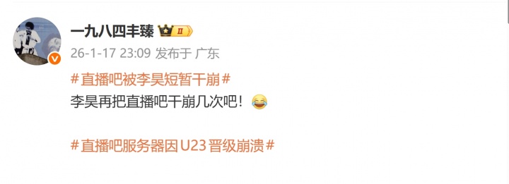 媒体人丰臻在社媒感叹:李昊再把直播吧干崩几次吧!😂