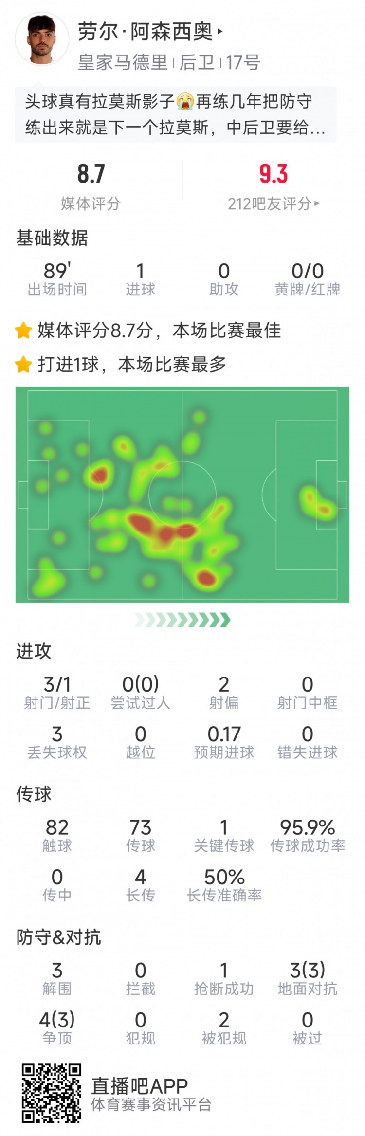 直播吧1月17日讯 在本轮西甲,皇马2-0击败莱万特。本场比赛劳尔·阿森西奥发挥出色,以下为他在本场数据: