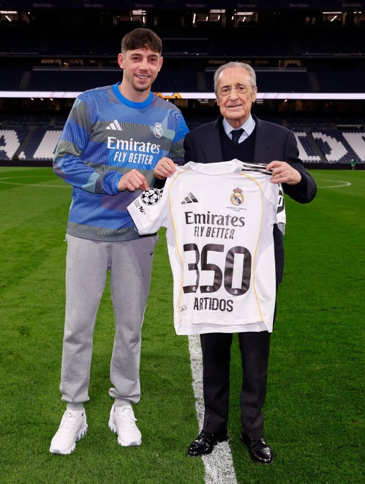 本场比赛巴尔韦德迎来自己在皇马生涯350次出场,他也获赠里程碑纪念球衣,并与主席弗洛伦蒂诺合影留念。他在皇马生涯贡献33球38助攻。
