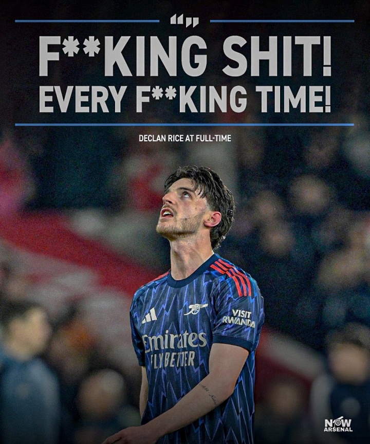 直播吧01月18日讯 阿森纳本轮0-0战平森林,比赛后,赖斯在场上爆粗:F**king shit,每次都****是这样!