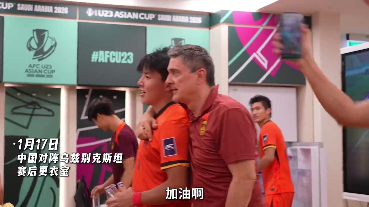 直播吧01月18日讯 昨晚U23国足在亚洲杯上创造历史,击败乌兹别克斯坦U23晋级半决赛。今日中国足球队官方账号发布赛场视频,揭露了比赛前后更衣室里的一些动态。