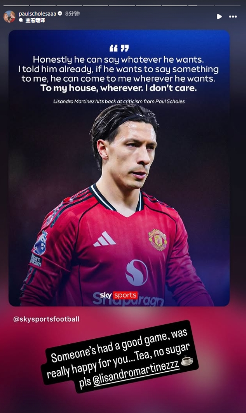斯科尔斯更新个人ins艾特利马写道:有些人踢了场很棒的比赛,真的为你开心…茶,不加糖