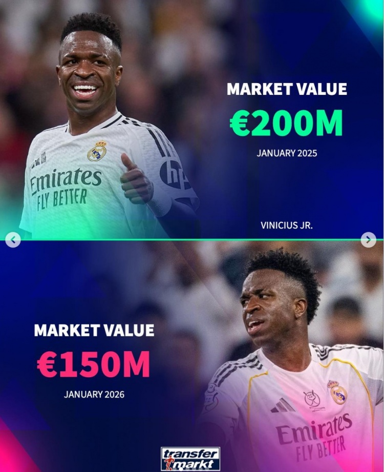 维尼修斯:2亿→1.5亿
