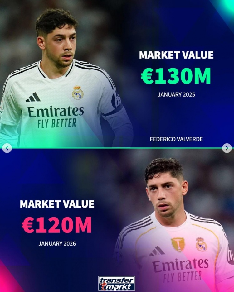 直播吧1月19日讯 皇马在近期表现不佳,经历西超杯败北、阿隆索被解雇、国王杯出局等负面事件,《转会市场》也列出了多位在过去一年身价下滑的皇马球星,巴西双子星贬值最多。