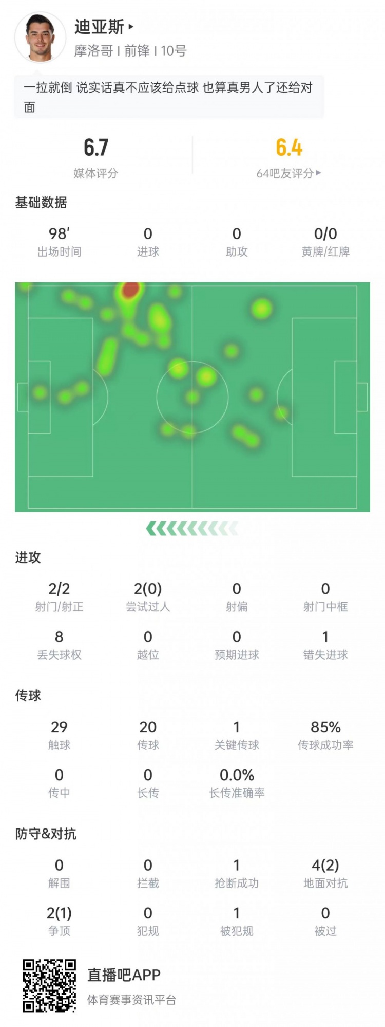 迪亚斯本场比赛数据