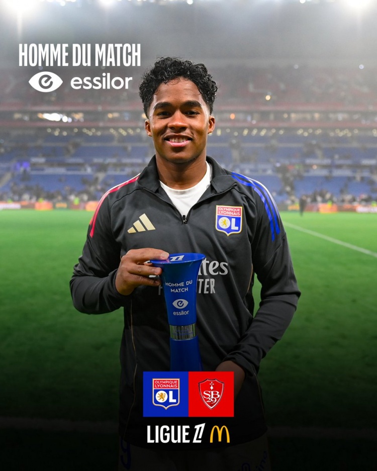 送出助攻!官方:恩德里克当选里昂2-1布雷斯特的全场最佳球员