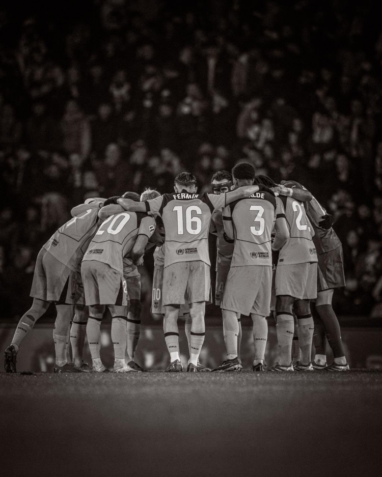 费尔明晒出全队搭肩的合照,并写道:“为我的球队感到骄傲,他们将无法战胜我们,巴萨万岁!”