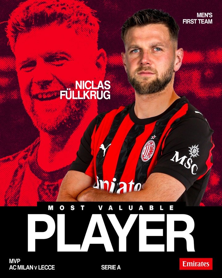 打入制胜球+终结9个月进球荒!菲尔克鲁格被评为米兰队内全场最佳