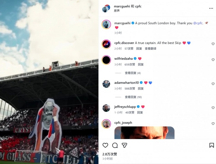 格伊先向水晶宫进行了告别:“(作为)一名骄傲的南伦敦男孩,感谢你@水晶宫🦅❤️”