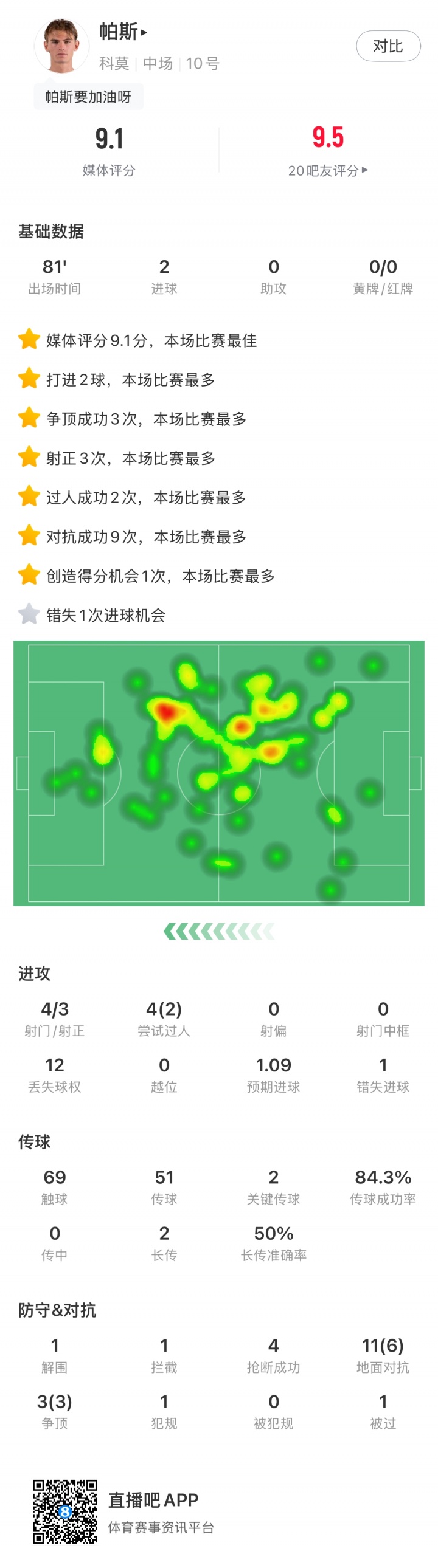21岁帕斯本赛季表现出色,各赛事为科莫出战22场,打进8球助攻6次,目前德转身价6500万欧。
