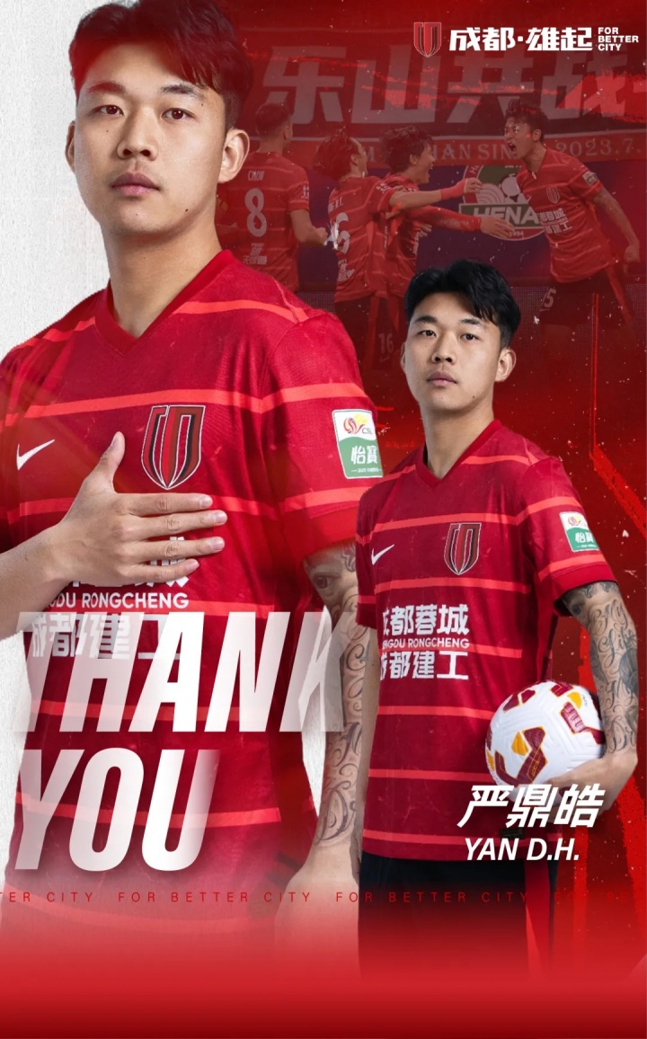 经与球员本人友好协商并达成一致,严鼎皓与成都蓉城足球俱乐部的合同到期不再续约。