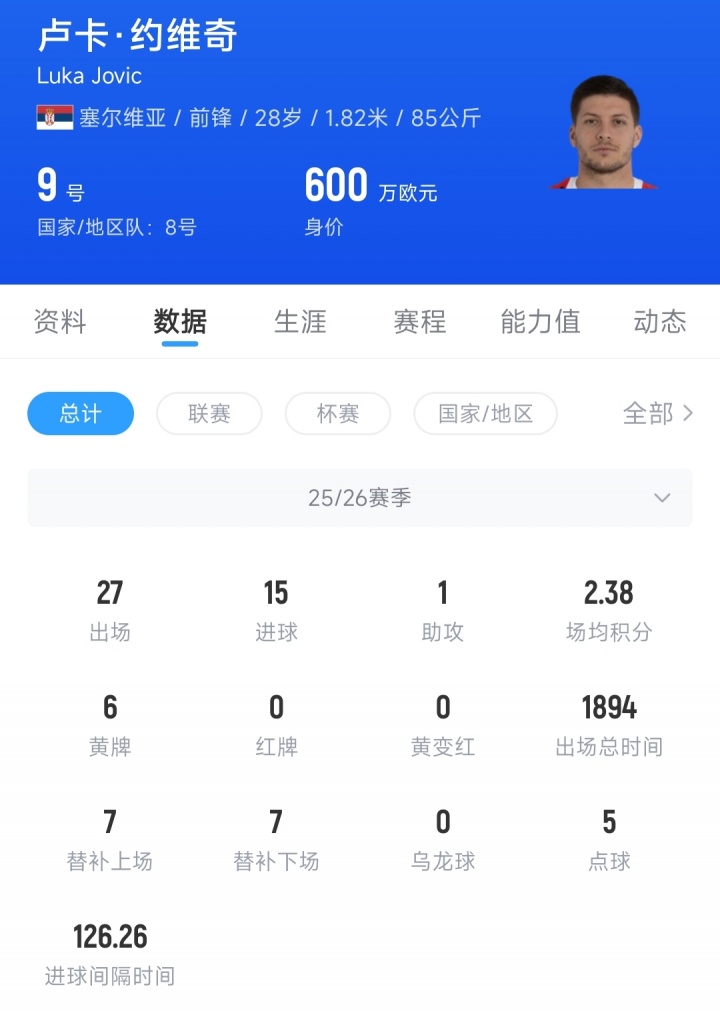 此后约维奇辗转佛罗伦萨、AC米兰,都没能找回昔日的风采。目前28岁的约维奇德转身价仅为600万欧,他与雅典AEK的合同将在2027年6月份到期。
