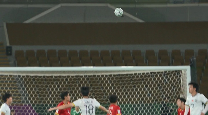 比赛第8分钟,国足U23传导至中路,陈泽仕禁区外爆射打高。