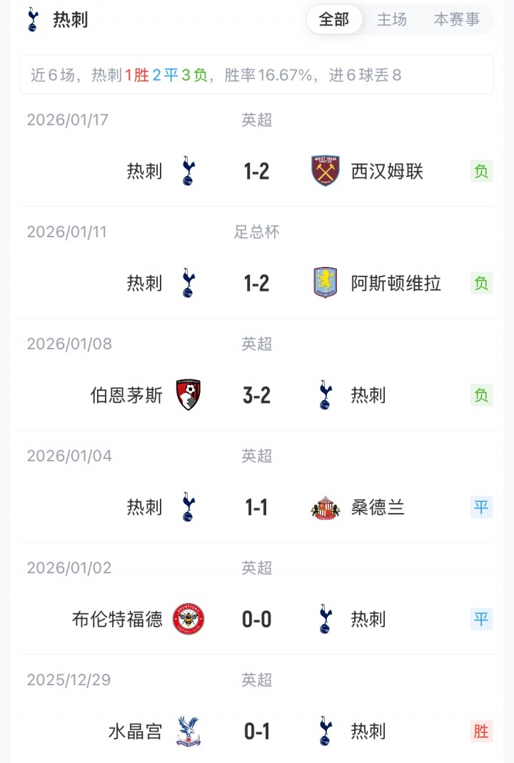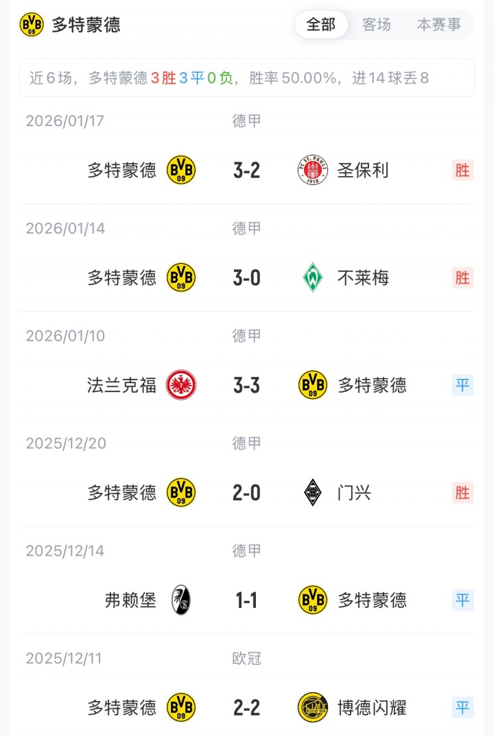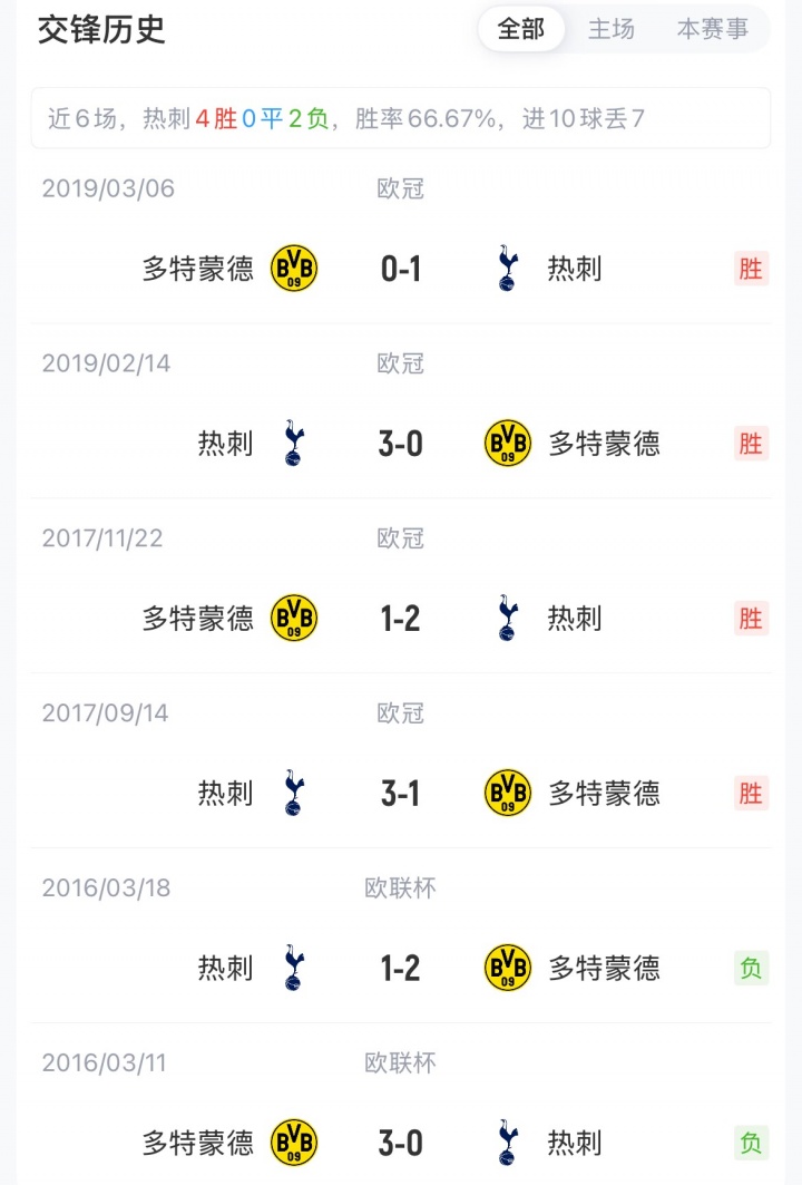 多特与热刺目前都是3胜2平1负,同积11分,分列11、12名。