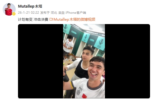 木塔力甫晒出更衣室庆祝视频,配文道:计划有变,冲击决赛。