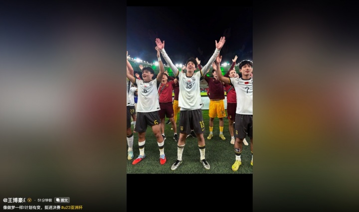 U23亚洲杯半决赛,U23国足3-0战胜越南U23,晋级U23亚洲杯决赛。王博豪发社媒庆祝晋级,并配文道,像做梦一样,计划有变,挺进决赛。