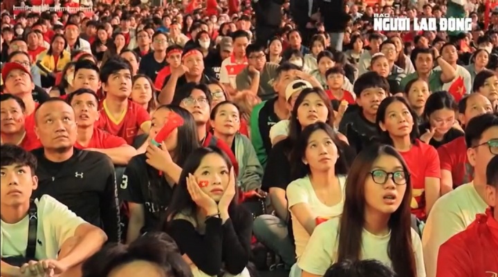 >越南球迷聚在广场看中越半决赛,一众女球迷看得目瞪口呆愁容满面