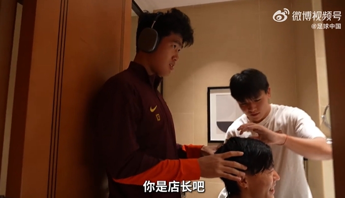 1月18日,U23国足对阵越南赛前,徐彬为胡荷韬、王钰栋理了新发型,手中的工具和动作显得颇为专业,队友彭啸也来调侃他。